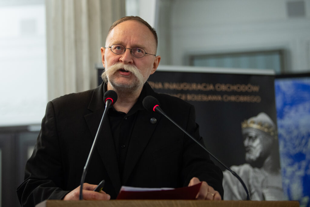 prof. dr hab. Grzegorz Kucharczyk, który mówił o „Suwerenności, jedności, świętości. O ustanawianiu i restauracji Królestwa Polskiego”;