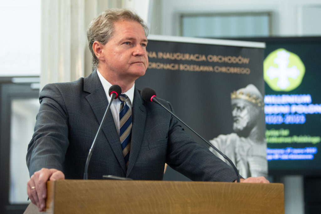 Wicemarszałek Bosak w swoim przemówieniu podkreślił znaczenie koronacji Bolesława Chrobrego jako momentu przypieczętowania polskiej państwowości, zwracając uwagę na konieczność obrony suwerenności narodowej w XXI wieku oraz na tradycję polskiej monarchii połączonej z parlamentaryzmem, która przez wieki stanowiła fundament ustrojowy Rzeczypospolitej.